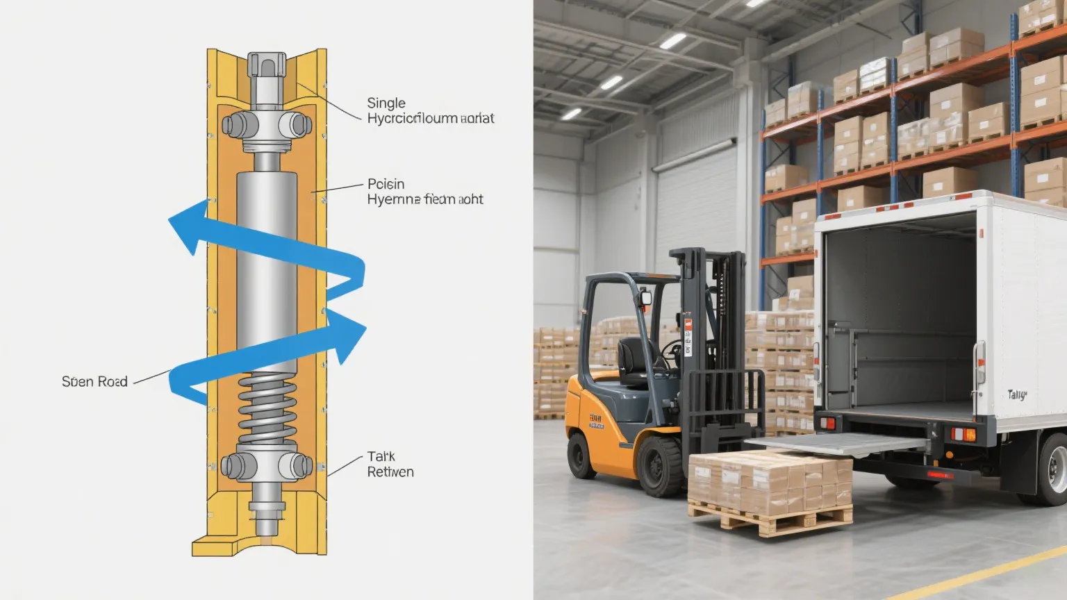 Assumere il cilindro di sollevamento idraulico a singolo azione, per esempio. È semplice: la pressione idraulica spinge il pistone verso l'alto e la gravità o una molla lo tira indietro. Nessun fronzolo extra, solo azione affidabile. Li troverai su cose come sollevamenti di coda per camion di consegna o quelle tavoli portatili a forbice nei magazzini: luoghi in cui non hai bisogno di controlli fantasiosi, solo un cilindro che si solleva quando ne hai bisogno e scende facilmente.