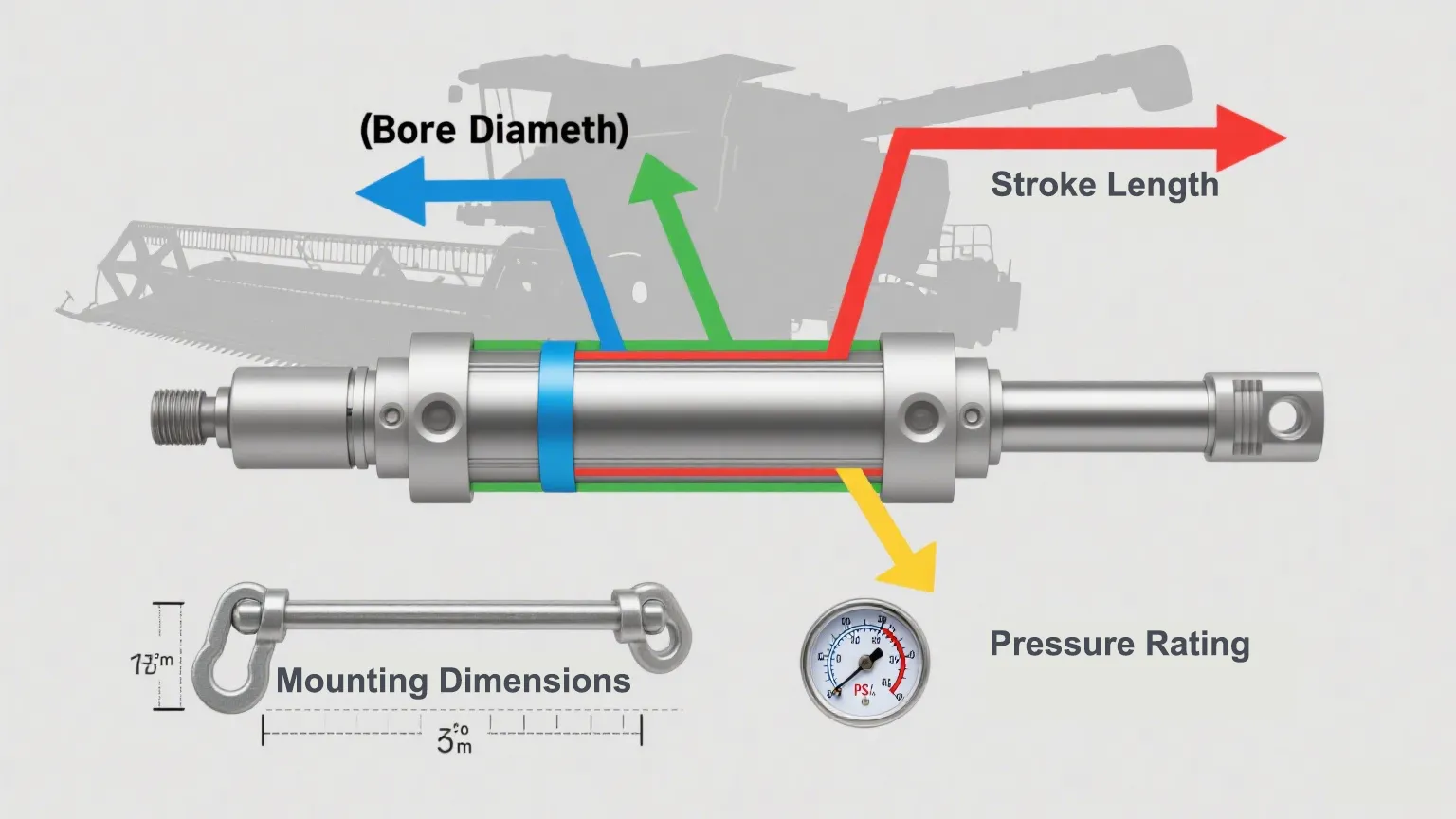 Prima di tutto, diametro del foro. Questo è ciò che determina la quantità di muscolo che il tuo cilindro idraulico della mietitrebbia. Troppo piccolo, e avrà difficoltà a sollevare quell'avvio pesante quando sei in colture spesse. Troppo grande e stai sprecando potere che potrebbe andare altrove. Controlla le specifiche del tuo vecchio cilindro o il manuale del tuo mietitore: questo numero deve abbinare, semplice e semplice, se vuoi il tipo di forza che gestisce i giorni difficili sul campo.