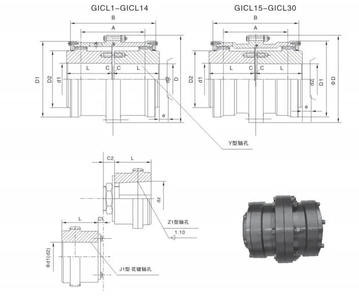 Per mantenere l'accoppiamento a forma di forma a forma di tamburi a lungo termine a lungo termine, è dotato di strutture di lubrificazione affidabili e sigilli che estendono la sua durata di servizio e semplificano la manutenzione. Il suo design simmetrico garantisce un'eccellente intercambiabilità, quindi la sostituzione di parti è semplice se necessario. Per le operazioni ad alta velocità in cui le velocità periferiche vanno oltre 36 m/s, applichiamo un bilanciamento dinamico per prevenire le vibrazioni e garantire prestazioni stabili. Le configurazioni del foro dell'albero offrono anche flessibilità: combinare tipi Y, Z1 e J1 per soddisfare le diverse esigenze di connessione per varie macchine industriali che utilizzano un accoppiamento per ingranaggi a forma di tamburo Gigl. Raydafon, un produttore di fiducia, produce una gamma completa di giunti a forma di batteria oltre Gigl, tra cui GICL, GIICL, GICLZ, GIICLZ e varianti NGCL, tutti soddisfano severi standard del settore per garantire la qualità.